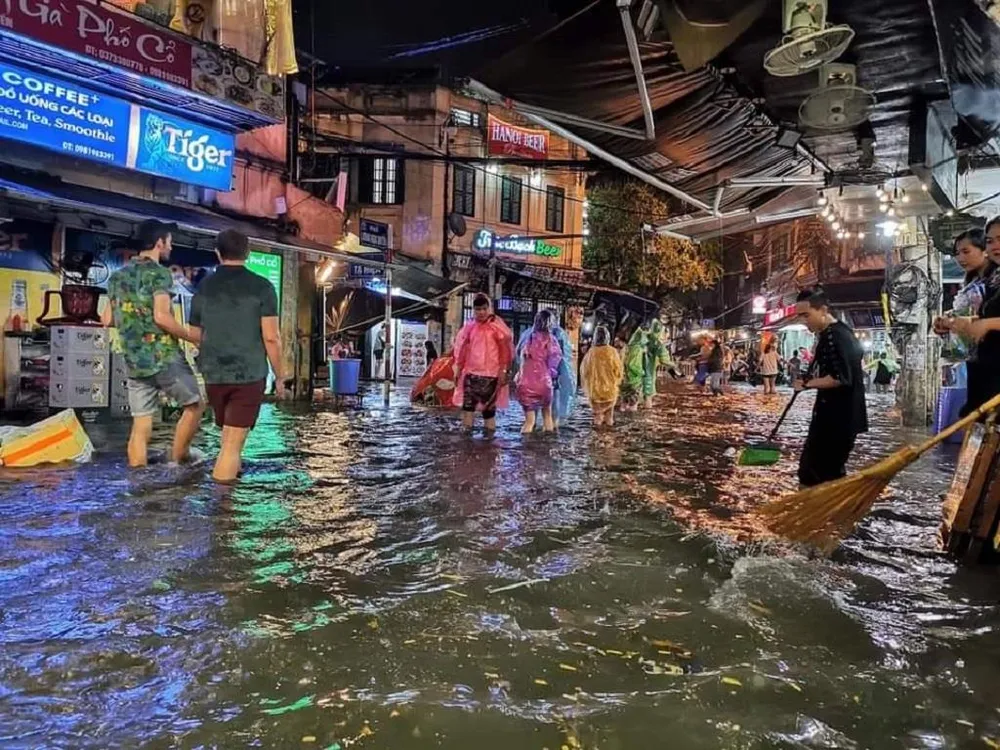 Trước đó, đêm 29-4, mưa và gió rất lớn cũng diễn ra tại thủ đô. Nhiều tuyến phố khu vực trung tâm Hà Nội ghi nhận mực nước dâng cao, ảnh hưởng trực tiếp tới việc đi lại.