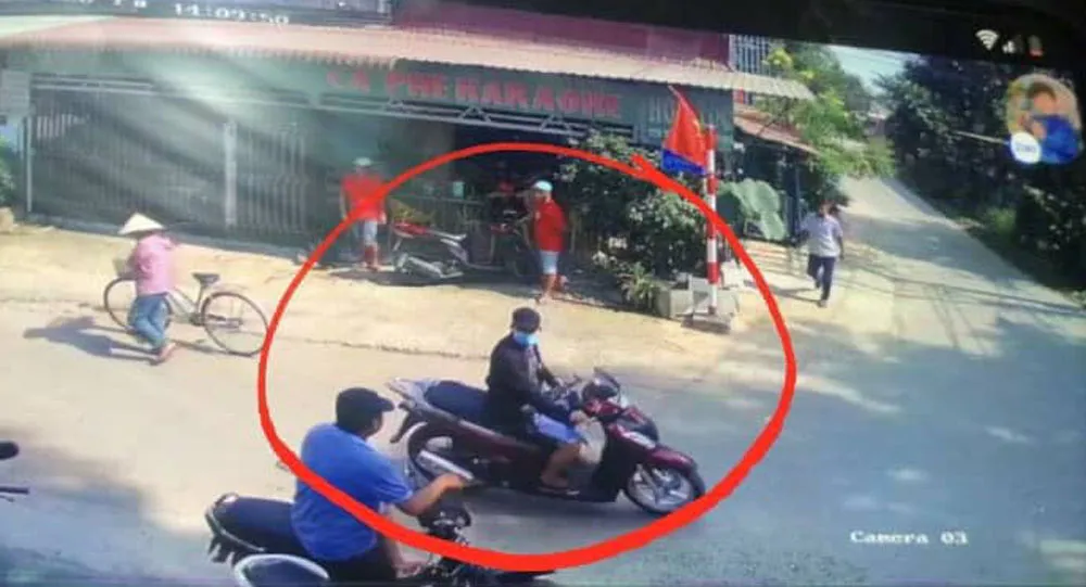 Kẻ nổ súng làm 4 người chết tẩu thoát trên xe SH màu đỏ cùng khẩu AK gác ngang phía trước. Ảnh: H.T
