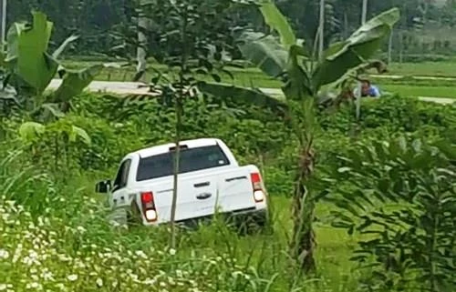 Xe bán tải khi Trung ôm súng, lựu đạn cố thủ bên trong nhiều giờ đồng hồ.