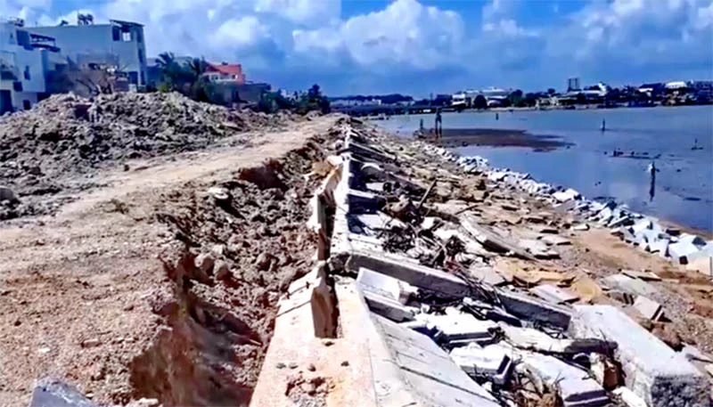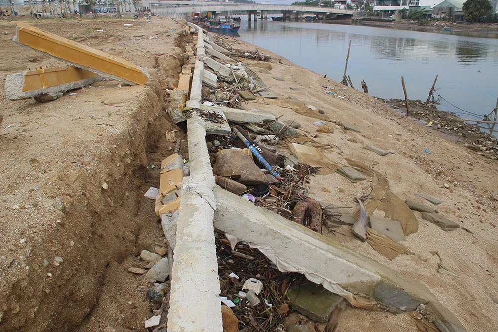 Phần lớn hệ thống kè bị vỡ vụn.