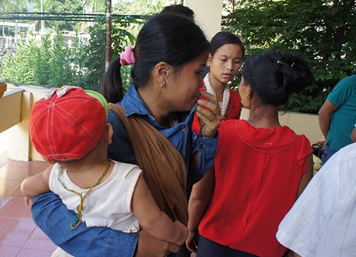 Vợ bị cáo Hai đưa con đến dự phiên xử