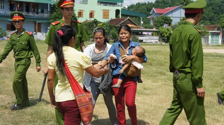 Các chiến sĩ cảnh sát cho hai mẹ con chị Nguyệt vào xe bịt thùng để được gặp Hai. Chị Nguyệt và con òa khóc ôm lấy Hai. Thấy hoàn cảnh mẹ con chị Nguyệt khóc nức nở bên xe bịt thùng, nhiều người dân đứng xem thở dài ái ngại.
