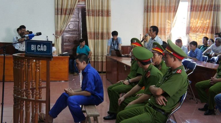 Chủ tọa yêu cầu Hai đứng dậy và hỏi bị cáo Hai "Bị cáo có chấp nhận bồi thường cho gia đình nạn nhân không".