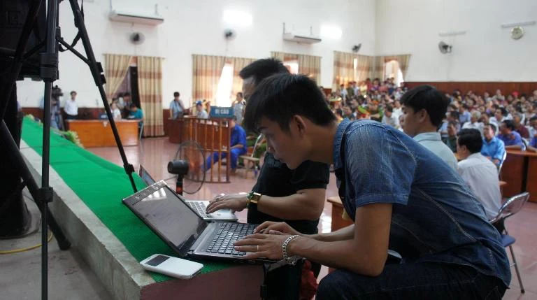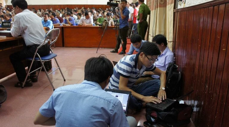 Các phóng viên đang tác nghiệp tại phiên tòa