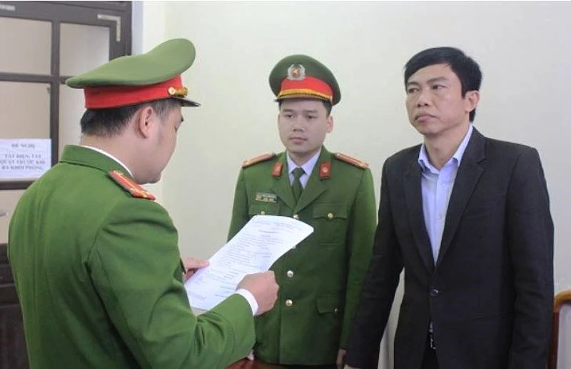Công an đọc quyết định khởi tố đối với ông Lê Anh Tuấn. Ảnh: Công an tỉnh Hà Tĩnh