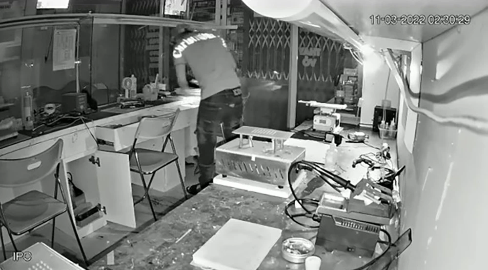Vụ trộm xảy ra vào ngày 11-3 tại cửa hàng sửa chữa điện thoại trên đường Tỉnh lộ 10. Diễn biến vụ trộm được camera an ninh ghi lại.