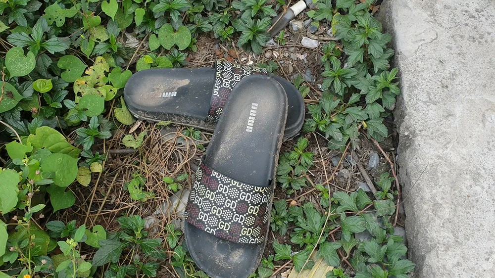 Đôi dép Hận để lại tại hiện trường. Ảnh: NT
