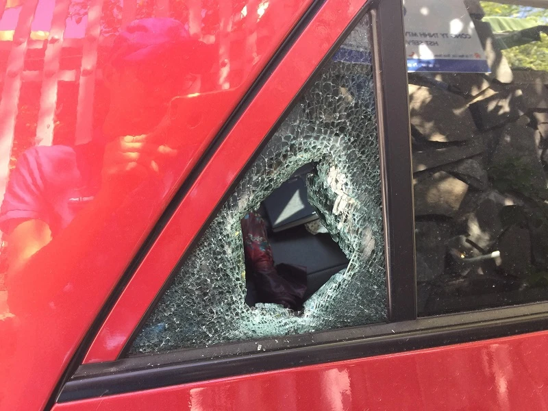 Xe chị O. bị kẻ xấu đập kính trộm tài sản.