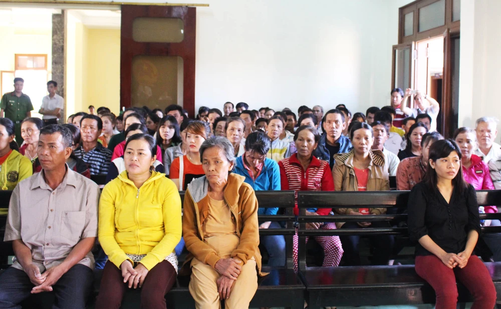 Rất đông người dân địa phương đến nghe tòa tuyên án nhóm côn đồ. Ảnh: TẤN LỘC