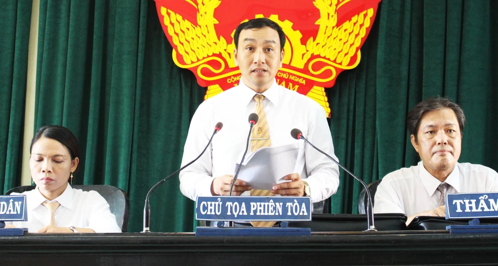 Thẩm phán Võ Nguyên Tùng, Chánh Tòa Hình sự TAND tỉnh Phú Yên, công bố bản án. Ảnh: TẤN LỘC