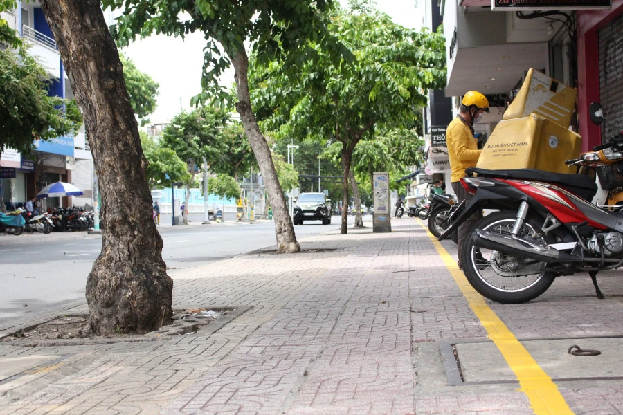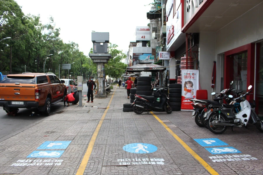 Những tuyến đường có phần vỉa hè nhỏ hẹp hơn như Nguyễn Đình Chiểu, Cách Mạng Tháng Tám, Cao Thắng, Võ Văn Tần… thì được kẻ thành hai phần đường dành cho người đi bộ và đỗ xe máy.