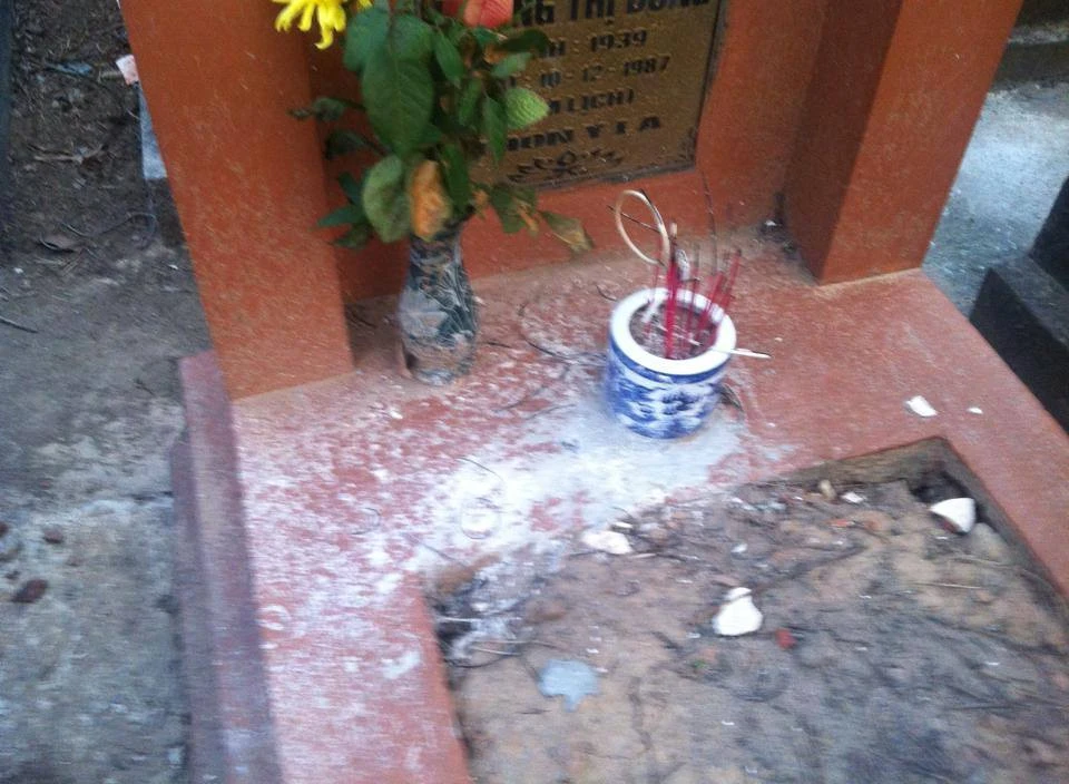Trao đổi với chúng tôi, bà Nguyễn Thị Đức (76 tuổi, ở Yên Phụ, Tây Hồ, Hà Nội) cho biết: “Sáng ngày 30-4, đứa cháu họ ở trong làng gọi điện ra thông báo, những ngôi mộ của gia đình bị phá hoại. Tôi vội vàng bắt taxi vào kiểm tra thì phát hiện 5/7 ngôi mộ của gia đình đã bị đập phá bát hương và lọ hoa, chỉ còn 2 ngôi mộ là còn nguyên vẹn”.