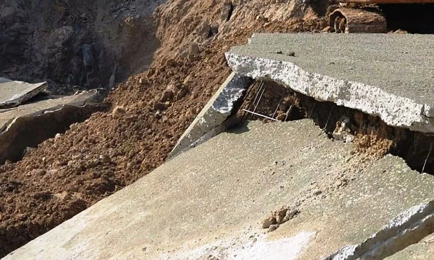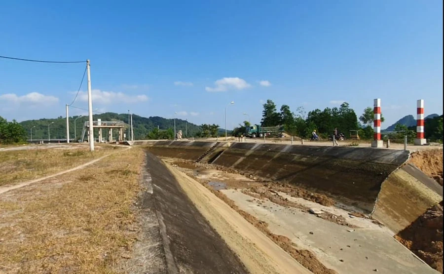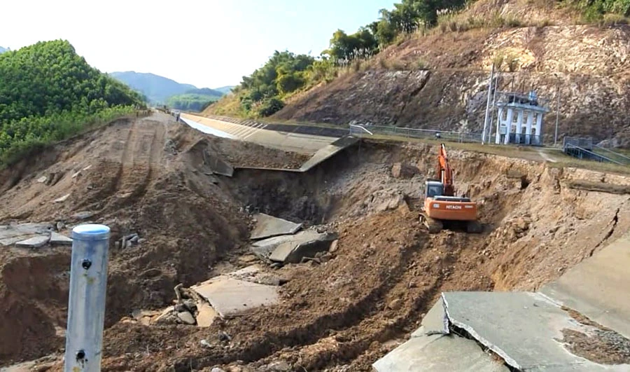Đoạn kênh bị đứt gãy dài khoảng 50m. Trước khi xảy ra sự cố, kênh không có dấu hiệu bất thường nên đơn vị này chưa rõ nguyên nhân.