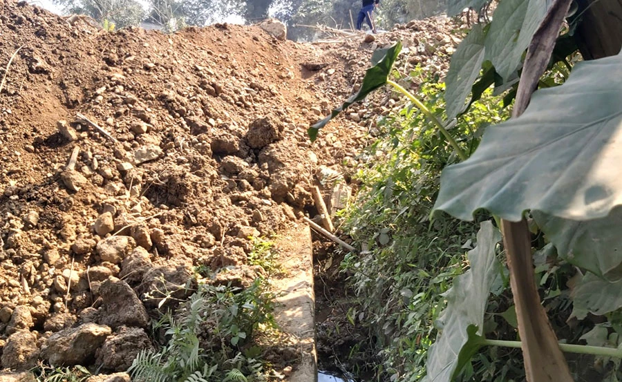 Nhà thầu thi công quốc lộ 15 qua địa bàn thị trấn Ngọc Lặc (Thanh Hóa) nhiều đoạn kênh phục vụ tưới tiêu cho hàng trăm hộ dân bị vùi lấp hoàn toàn khi vụ Đông Xuân 2021 đã cận kề. Ảnh: Đ. TRUNG