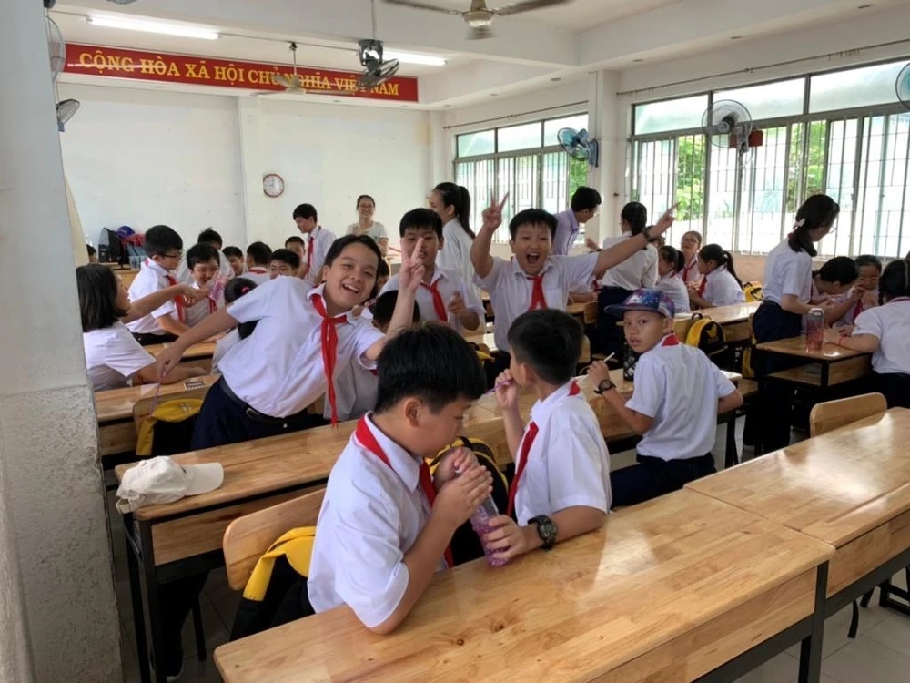 Tại TP.HCM, sau lễ khai giảng ngắn gọn, học sinh lớp 6 Trường THCS Nguyễn Gia Thiều (quận Tân Bình) đã được tham gia trò chơi làm thí nghiệm rất thú vị và bổ ích.