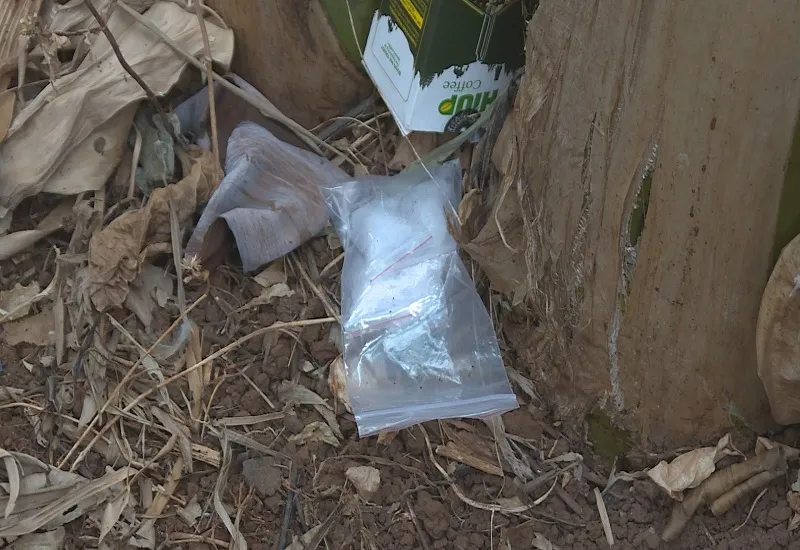 Tại đây, lực lượng Công an đã phát hiện Vũ cất dấu bảy gói ma túy đá sau vườn chuối (gần 250gam).