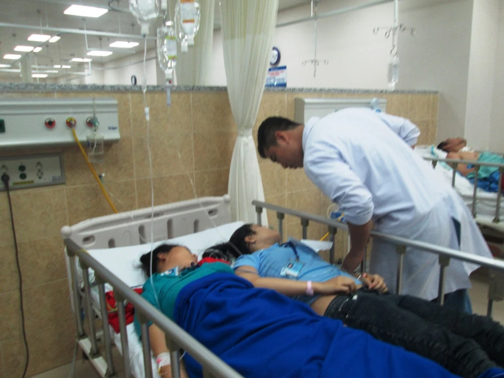 Công nhân bị ngộ độc cấp cứu tại BV Đồng Nai. Ảnh:TIẾN DŨNG