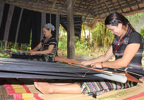Xem dệt thổ cẩm H’Rê dưới mái nhà sàn