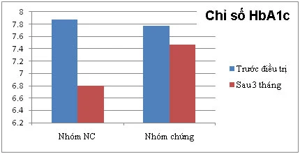 - Chỉ số HbA1c của những bệnh nhân nhóm nghiên cứu sau ba tháng điều trị có xu hướng giảm từ 7,88% xuống 6,80%. Ngược lại, HbA1c của bệnh nhân nhóm chứng có xu hướng giảm nhưng không đáng kể (từ 7,77% xuống 7,47%). Kết quả đáng mừng hơn khi số người dùng TĐCARE sau nghiên cứu có mức ổn định đường huyết và HbA1c rất tốt và duy trì trong khoảng cho phép. (Biểu đồ 2)