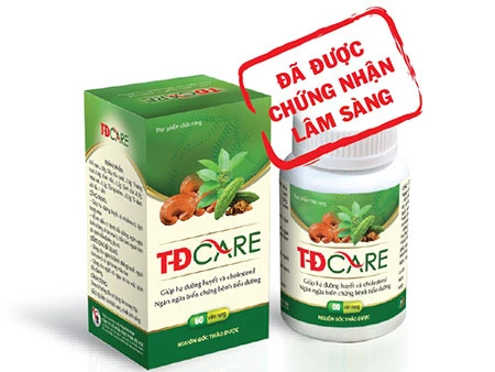 KẾT LUẬN: TĐCARE là sản phẩm hỗ trợ điều trị tiểu đường đầu tiên tại Việt Nam được nghiên cứu lâm sàng một cách đầy đủ và rõ ràng. Trong nghiên cứu cho thấy TĐCARE được sản xuất từ bảy thảo dược quý có tác dụng hỗ trợ làm giảm đường huyết từ 8,7 mmol/l xuống 6,37 mmol/l, giảm chỉ số HbA1c từ 7,88% xuống còn 6,8% sau ba tháng, giảm cholesterol và lipid máu, ngăn ngừa biến chứng tim mạch và biến chứng thần kinh ngoại biên do tiểu đường gây ra. Sản phẩm dùng an toàn cho người bệnh, không gây tác dụng phụ. Người bệnh nên sử dụng tối thiểu trong vòng ba tháng, ngày uống 4-6 viên.