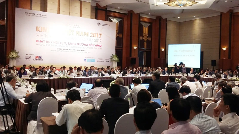 Diễn đàn kinh tế Việt Nam 2017 do Ban Kinh tế Trung ương tổ chức sáng 27-6 tại Hà Nội. Ảnh: TRÀ PHƯƠNG
