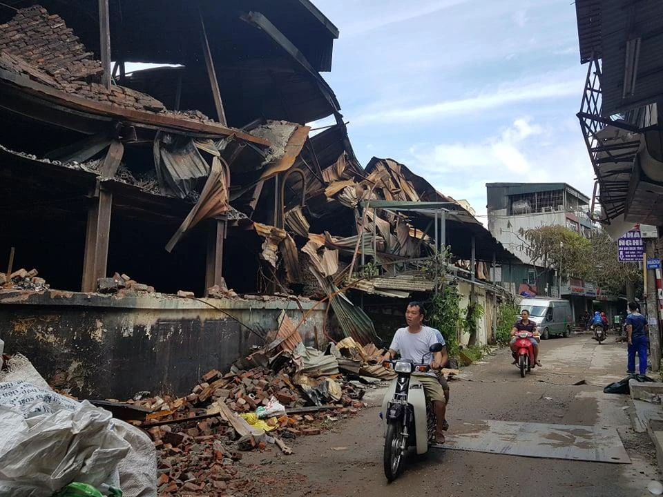 Khung cảnh tan hoang sau vụ cháy nhà xưởng ở Công ty Rạng Đông. Ảnh: AH