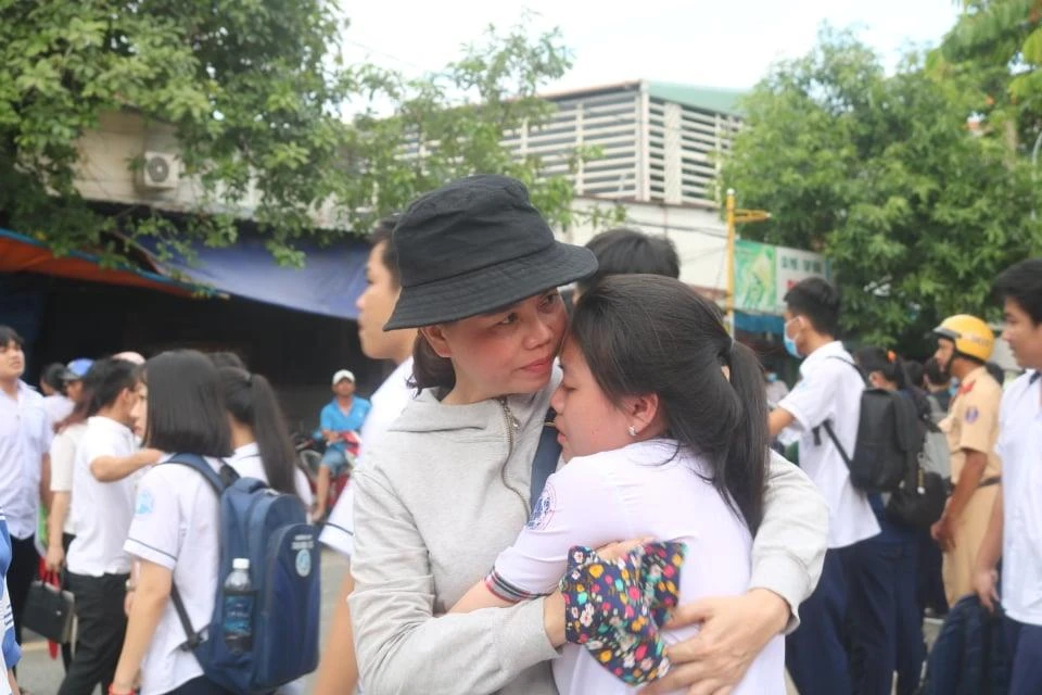 Thí sinh ôm mẹ sau khi hoàn thành ngày thi thứ 2