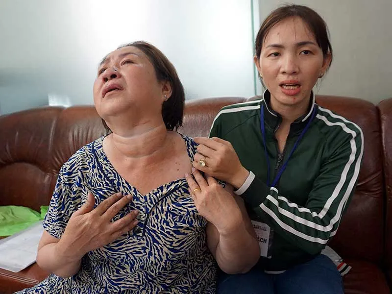 Chị Nguyễn Thị Gái (phải, vợ Tân) từng bị cơ quan điều tra bắt nhầm vì lời khai của Lương. Ảnh: N.NGA