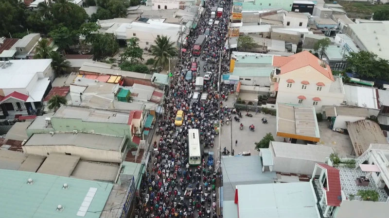 Dòng người bị kẹt xe kéo dài gần 5km do một vụ tai nạn ở huyện Bình Chánh