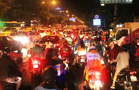 Từ khoảng 7 giờ 30 ngày 22-1, hàng ngàn phương tiện dồn ứ, nối đuôi nhau một đoạn dài hơn 1 km trên xa lộ Hà Nội (quận 2, TP.HCM). Nguyên nhân xuất phát từ một vụ tai nạn giao thông.