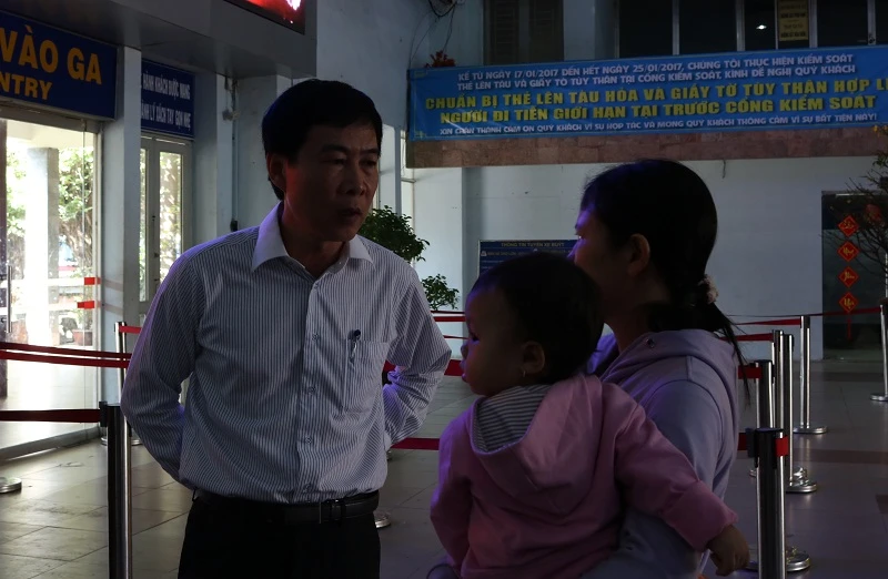 Ông Đỗ Quang Văn, Giám đốc chi nhánh vận tải đường sắt Sài Gòn khi biết chuyện đã đến hỏi thăm, an ủi và sắp xếp để tạo điều kiện cho hai gia đình mua lại vé. ẢNH: THANH TUYỀN.