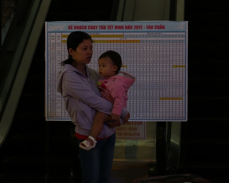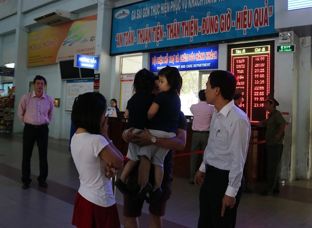 “Lúc xe vừa vào trong sân ga, thấy tàu chạy là tôi biết cả gia đình tôi đã trễ rồi. Mấy anh hướng dẫn thấy vậy chạy tới xách đồ phụ cùng chùng tôi với hy vọng tàu sẽ dừng kịp, hai vợ chồng ôm con cùng chạy nhưng vừa đến chỗ kiểm soát vé thì nhân viên báo là trễ tàu rồi...”, anh Linh vừa dỗ dành vợ, vừa kể lại.