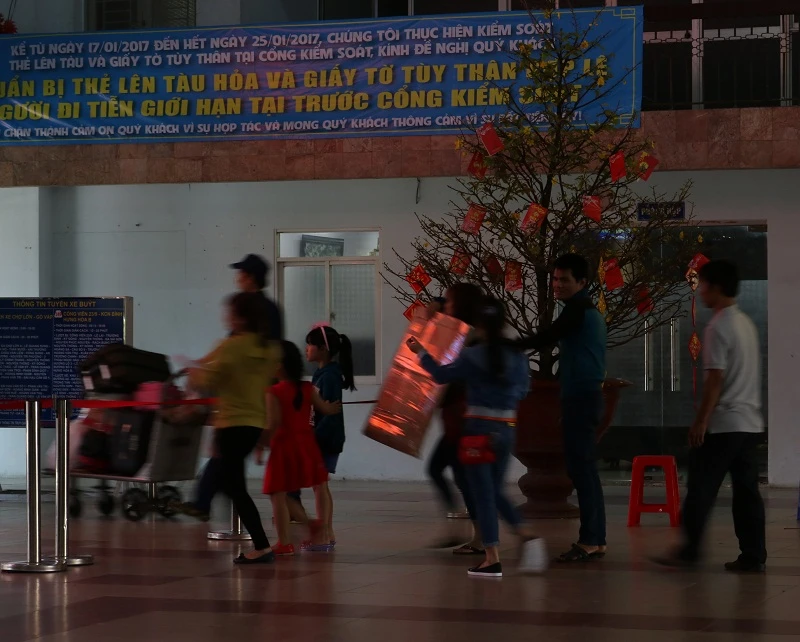 Còn gia đình chị N.T.T cũng về tới Quảng Ngãi. Chị T cho biết đã đặt mua vé cách đây ba tháng (từ ngày 1-10) để tránh trường hợp hết vé hay chen lấn những ngày cận Tết. Tuy nhiên, chị cũng không ngờ cả gia đình chị lại kẹt lại như vậy vì trễ tàu... Chị T còn có hai đứa con nhỏ.