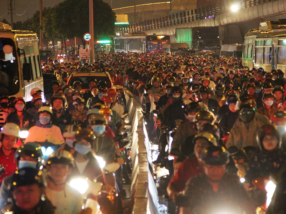 Hàng ngàn phương tiện hướng từ đường Võ Văn Ngân (quận Thủ Đức) sang đường Lê Văn Việt (quận 9) và ngược lại.