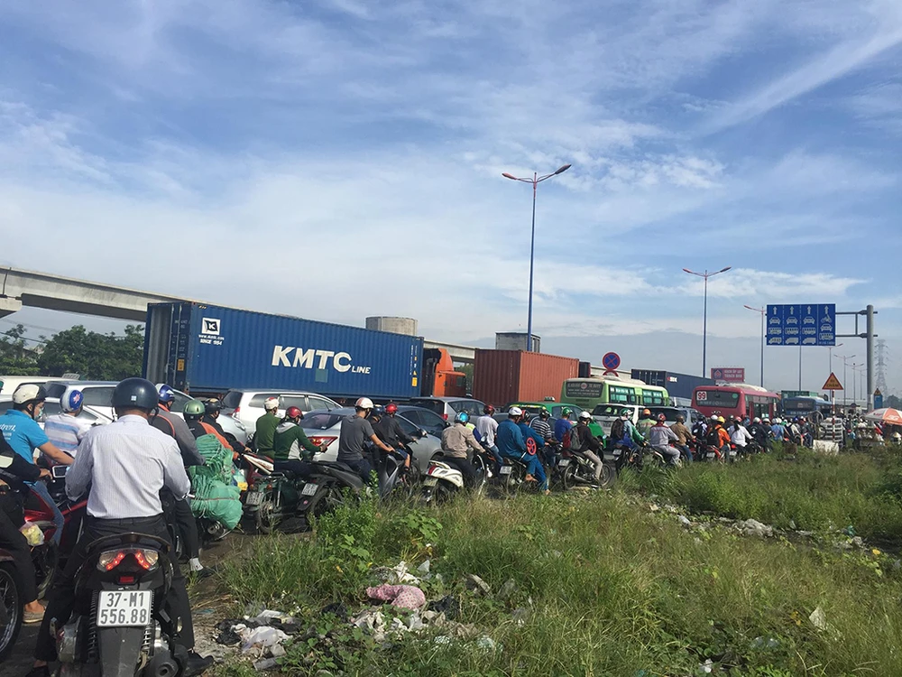 Theo tìm hiểu, một phần nguyên nhân khiến mật độ phương tiện tăng cao là do thứ 6 hàng tuần, nhiều ô tô ra vào cảng Trường Thọ (quận Thủ Đức) để lấy hàng tăng, nhiều phương tiện không vào cảng được phải dừng bên xa lộ dẫn đến ùn tắc.