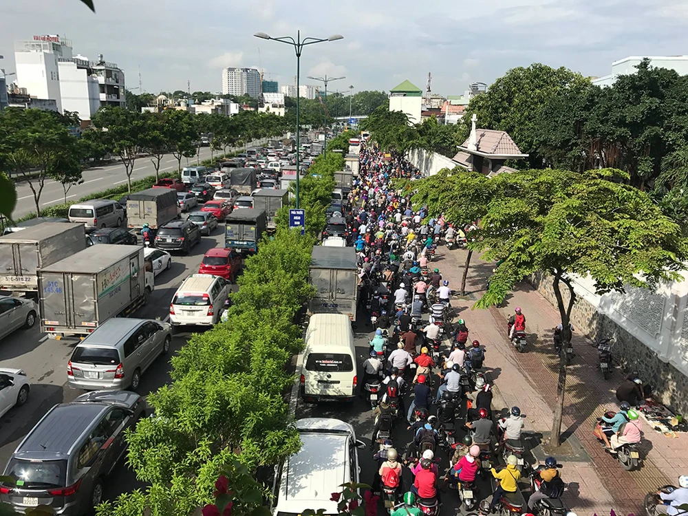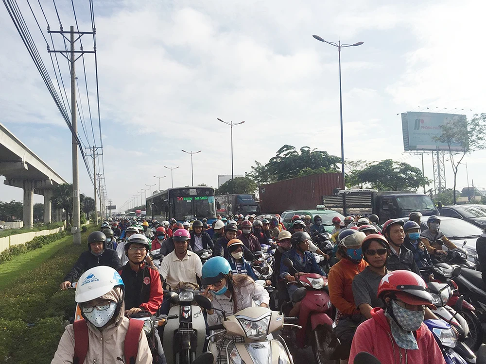 Hàng ngàn xe máy gần như chôn chân tại chỗ trên xa lộ trong giờ cao điểm.