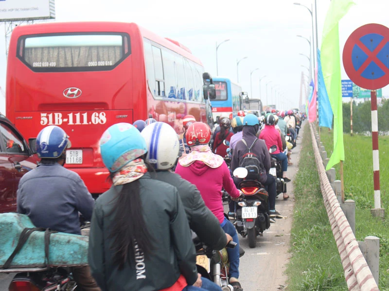 Cầu Rạch Miễu quá tải ngày đầu năm