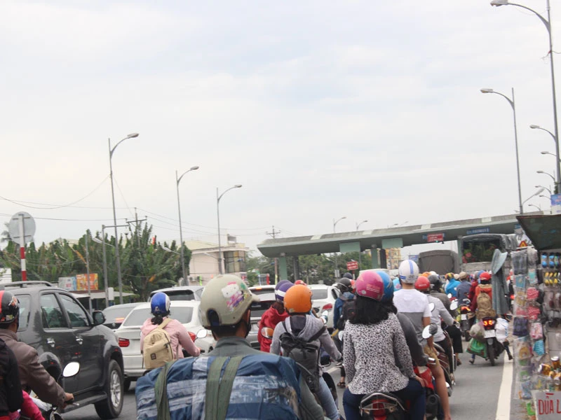 Ghi nhận của PV, từ 14 giờ chiều ngày 1-1, dòng người từ các tỉnh miền Tây đã bắt đầu ùn ùn trở lại TP.HCM. Giao thông qua tuyến QL60 đông đúc. Đến khoảng 16 giờ cùng ngày, mật độ phương tiện xe máy, xe ô tô các loại, xe vận tải khách càng lúc càng đông đổ dồn về trạm thu phí BOT cầu Rạch Miễu.