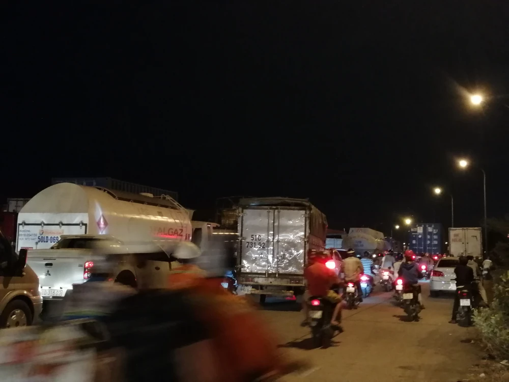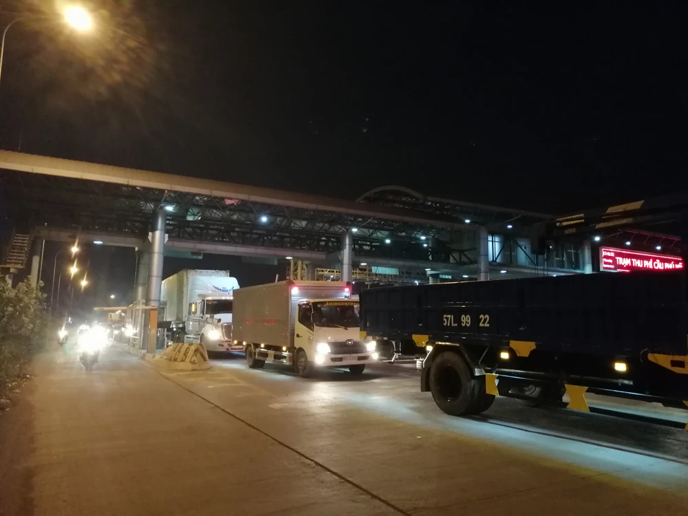 Do đó, hàng loạt xe container, xe khách phải lưu thông vào làn xe máy. Trạm thu phí cầu Phú Mỹ trở nên quá tải.