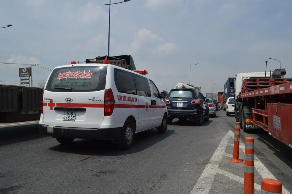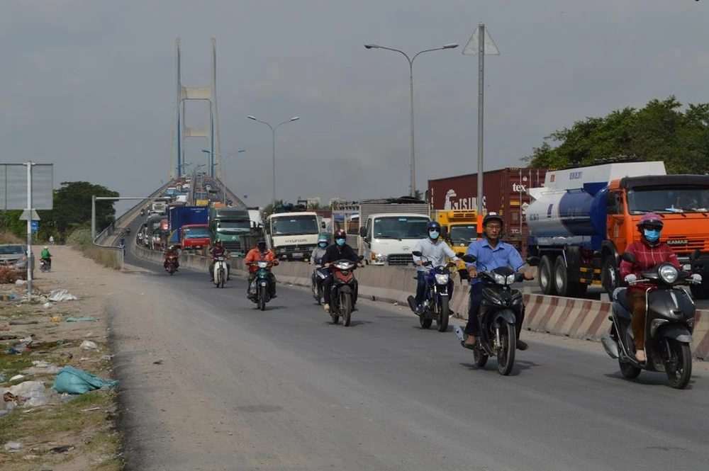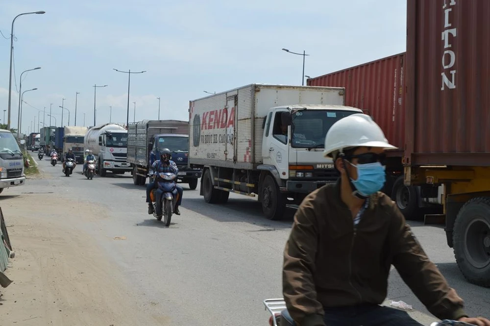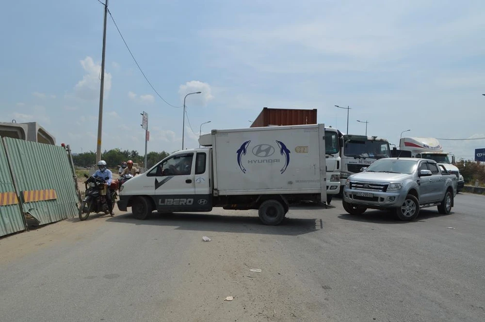 Đoạn đường này chủ yếu xe container, xe tải và xe máy lưu thông. Trong ngày đầu dịp nghỉ lễ 30-4 và 1-5, có thêm hàng trăm xe ô tô con, xe du lịch di chuyển về các tỉnh nên việc di chuyển qua đoạn đường này càng khó khăn hơn.