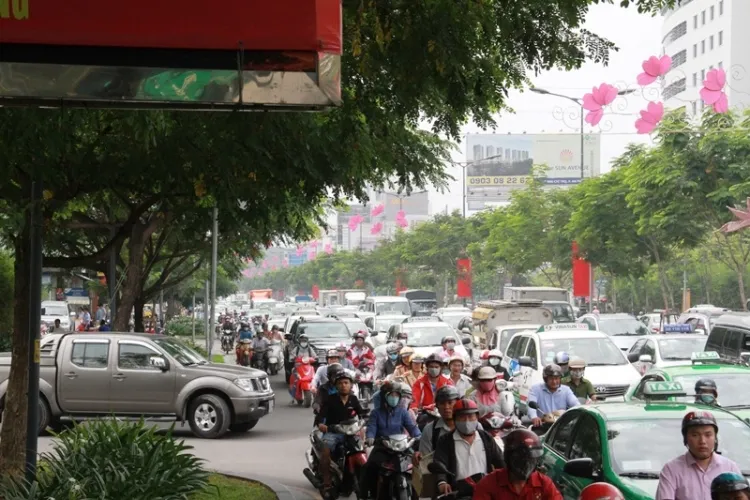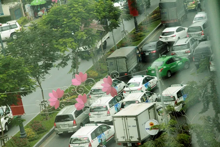 Tình trạng kẹt xe ở cửa ngõ sân bay Tân Sơn Nhất đã nóng lên trong thời điểm cận Tết, lưu lượng phương tiện lớn