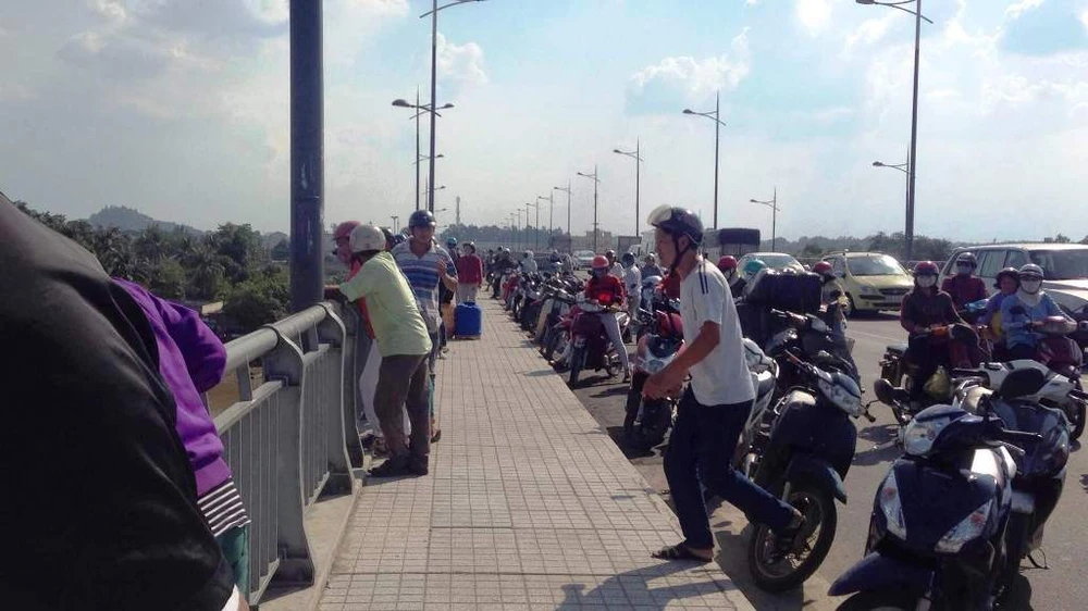Khoảng 14 giờ ngày 17-11, mặc dù không phải là giờ cao điểm nhưng tình trạng giao thông tại khu vực cầu Hóa An đoạn qua xã Hóa An, TP Biên Hòa (Đồng Nai) bỗng nhiên bị ảnh hưởng nghiêm trọng. Cụ thể, trên cầu Hóa An, hướng từ Bình Dương về TP Biên Hòa, hàng trăm xe máy được dựng ngay trên cầu, chiếm mất một diện tích không nhỏ của mặt cầu khiến việc lưu thông của các phương tiện giao thông gặp rất nhiều khó khăn. Nguyên nhân là nhiều người đi xe máy tụ tập trên cầu để theo dõi các cơ quan chức năng tìm kiếm một cô gái nhảy xuống sông tự tử.