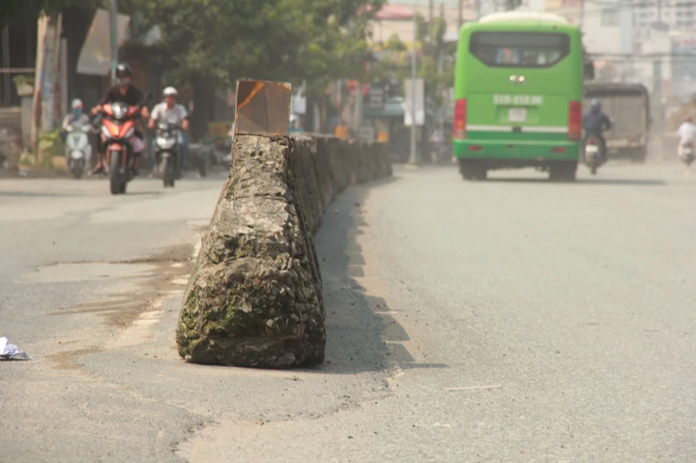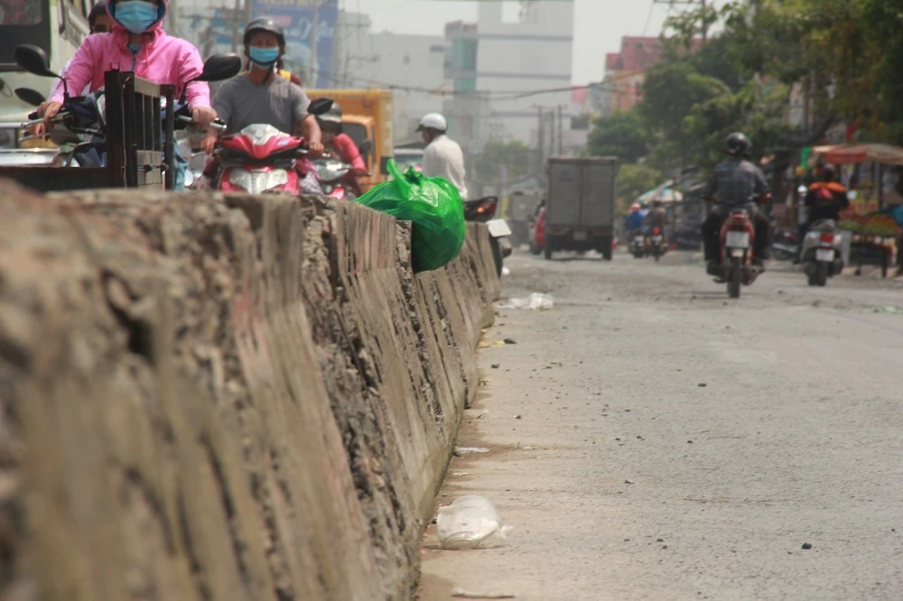 Có đoạn đường được đổ đá dăm, sỏi nhỏ nên rất dễ bị té ngã, đặc biệt là khi đường ngập.