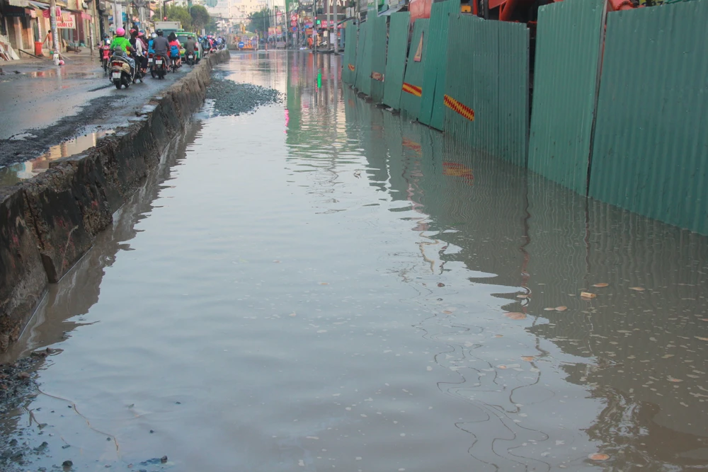 Đây là đoạn đường Huỳnh Tấn Phát (quận 7) bị ngập khi triều cường