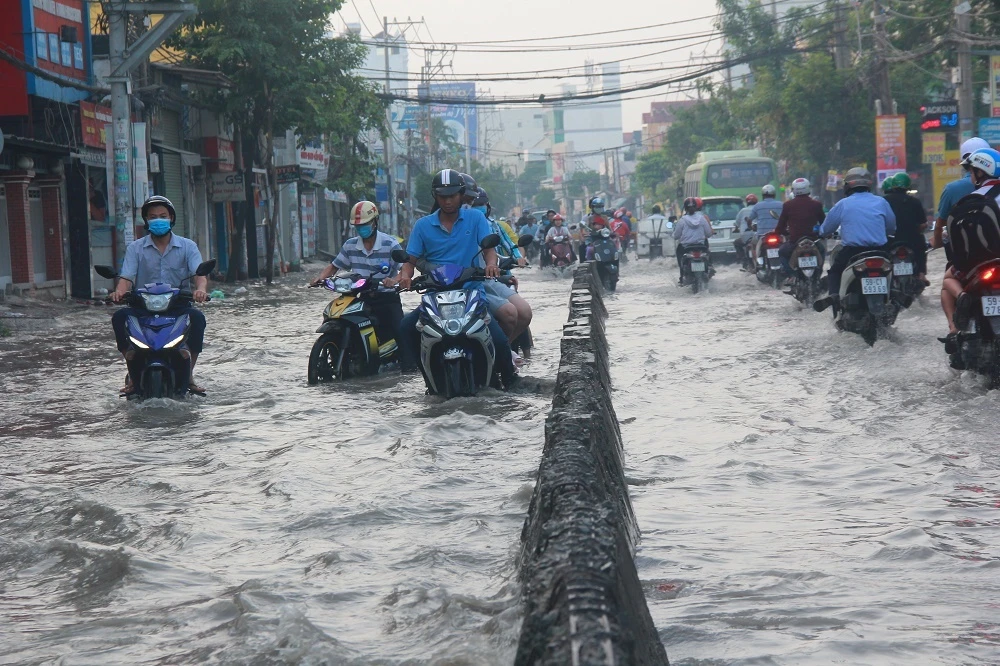 Ngày 8 và 9-11, triều cường tại TP.HCM đạt đỉnh, những nơi nước dâng cao đạt 1,6 m, nhiều tuyến đường ngập sâu vào chiều tối và sáng sớm như Huỳnh Tấn Phát, Lê Văn Lương, khu vực Thanh Đa, khu vực Thảo Điền, quận 2...