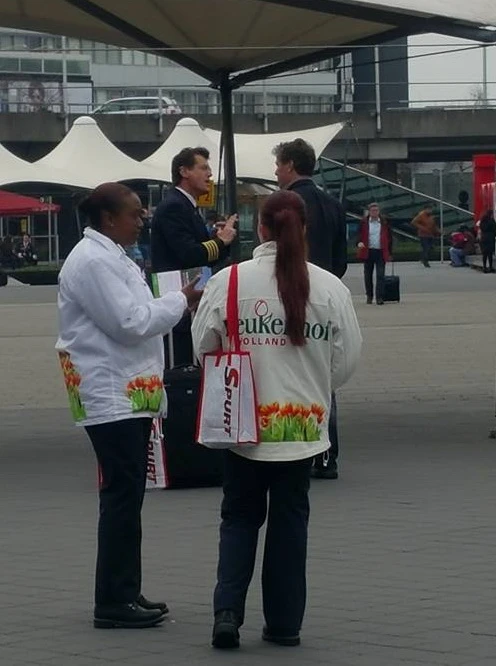 Ngay từ Ga hàng không quốc tế Schiphol, Amsterdam, ban tổ chức đã đặt cổng chào, người đón tiếp, hướng dẫn khách ra tuyến xe bus riêng đưa về Keuk. Chừng 20 phút là đến hội hoa.