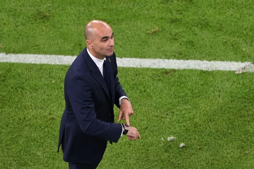 HLV Roberto Martinez ra dấu cho các học trò khi thời gian trận đấu còn quá ít.