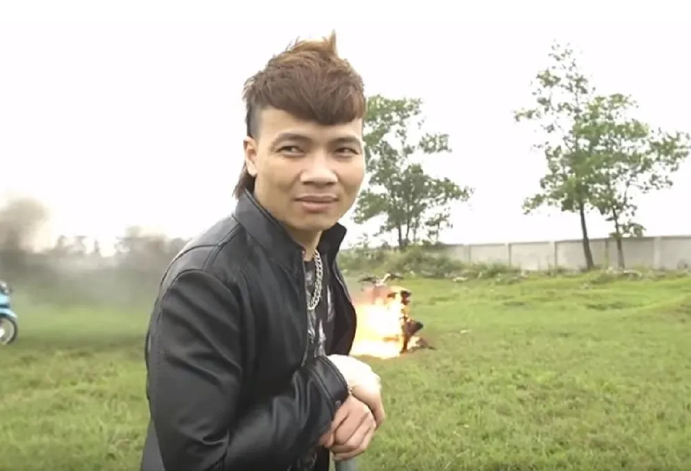 Khá "bảnh" trong đoạn clip tự đốt xe máy.