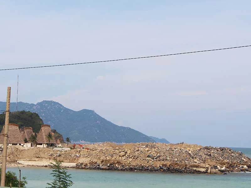 Phần diện tích lấp lấn vịnh Nha Trang vẫn còn ngổn ngang tại dự án Khu nghỉ dưỡng Champarama Resort & Spa. Ảnh: TẤN LỘC