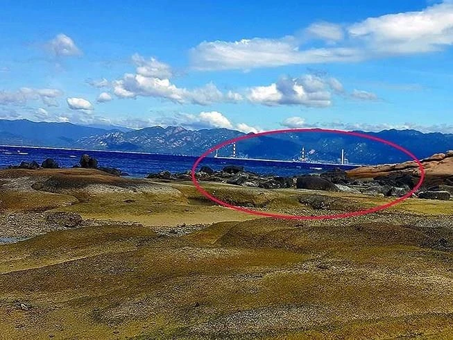 Một góc đảo Hòn Cau, phía xa là Trung tâm Điện lực Vĩnh Tân.
